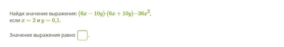 упростим выражение и получим (6x)^2 - (10y)^2 - 36x^2