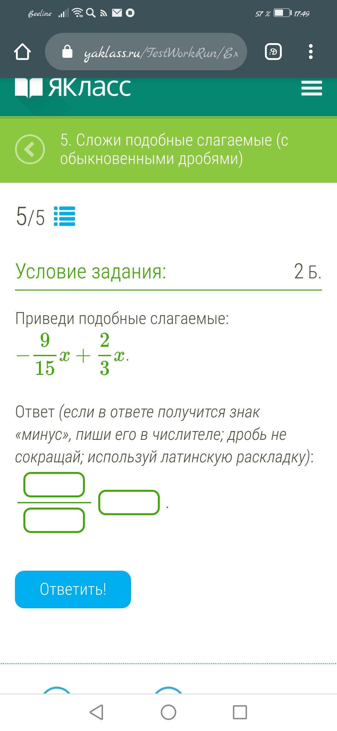 В дроби -9/15x сокращается 9 на 3, а в дроби 2/3x сокращается 3 до 1, получается -3/15x + 2x