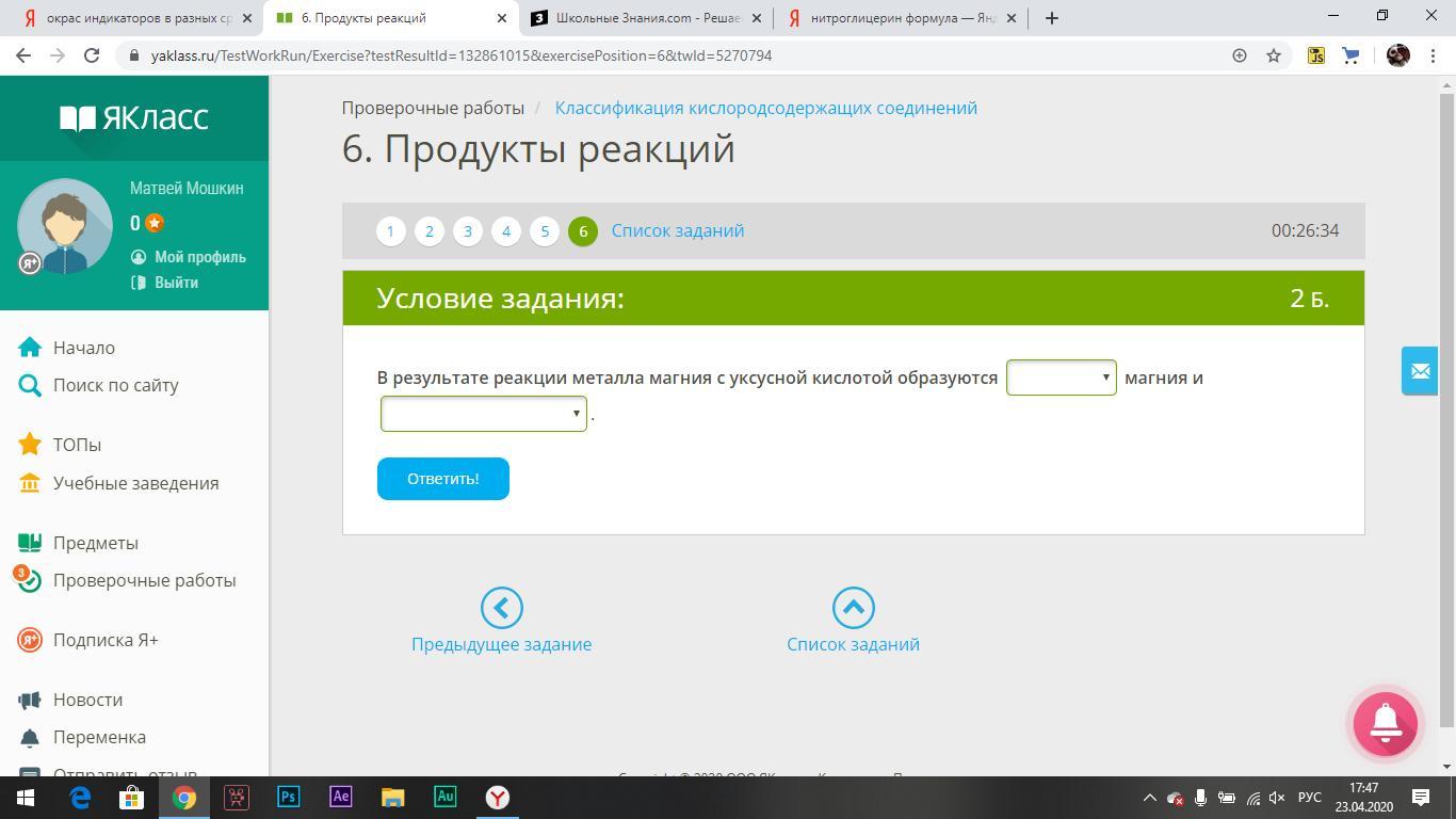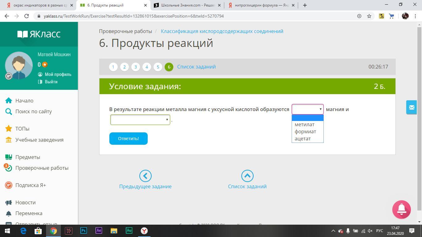 Срочно! Химия. В результате реакции металла магния с уксусной кислотой образуются : 1) метилат... 2)формилат... 3)ацетат... магния и 1) водород. 2) вода + углекислый газ. 3)вода.