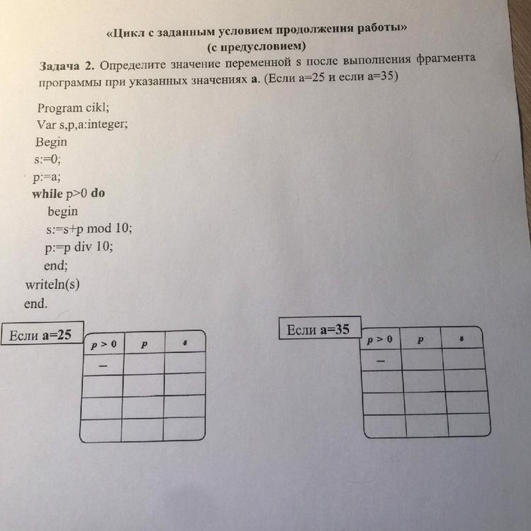 Отпределите значение переменной s после выполнения фрагмента программы при указанных значениях a (если a=25 и если a=35)