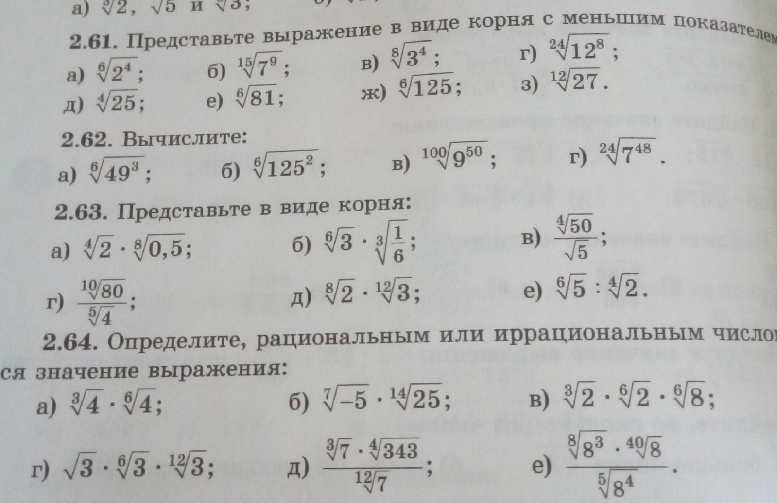 Помогите пожалуйста ,может кто-то понимает алгебру номер 2.61(д,е,ж,з),2.63(г,д,е) 2.64(г,д,е).Задание на фото пожалуйста помогите,если знаете)))