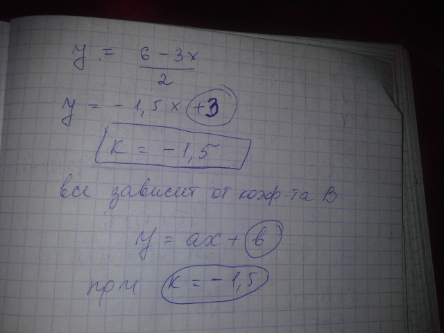 Прямая задана уравнением 3x+2y=6.Укажите значение коэффициента k, при котором данная прямая и прямая, заданная уравнением y=kx , параллельны.