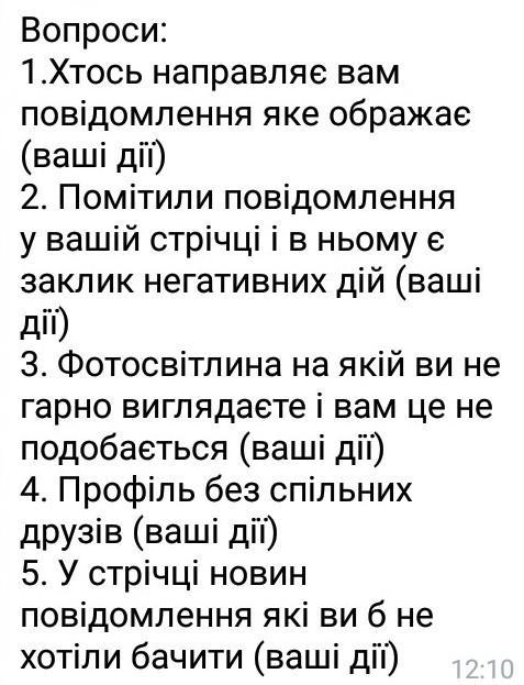 Ответ: 1.Видалити повідомлення, заблокувати відправника.