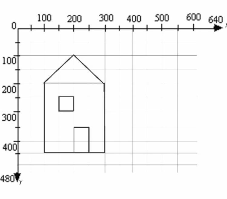и две линии образующие крышу с координатаит (100,200,200,100) и (200,100,300,200)