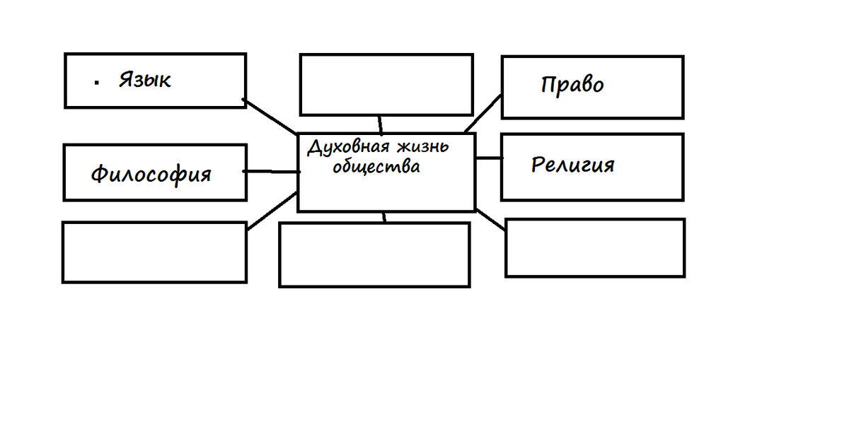 Духовная жизнь общества:1.Наука.2.Нравственность.3.Религия.4.Философия.5.Искусство.6.Научные учреждения.7.Учреждения культуры.8.Религиозные организации.9.Соответствующая деятельность людей.