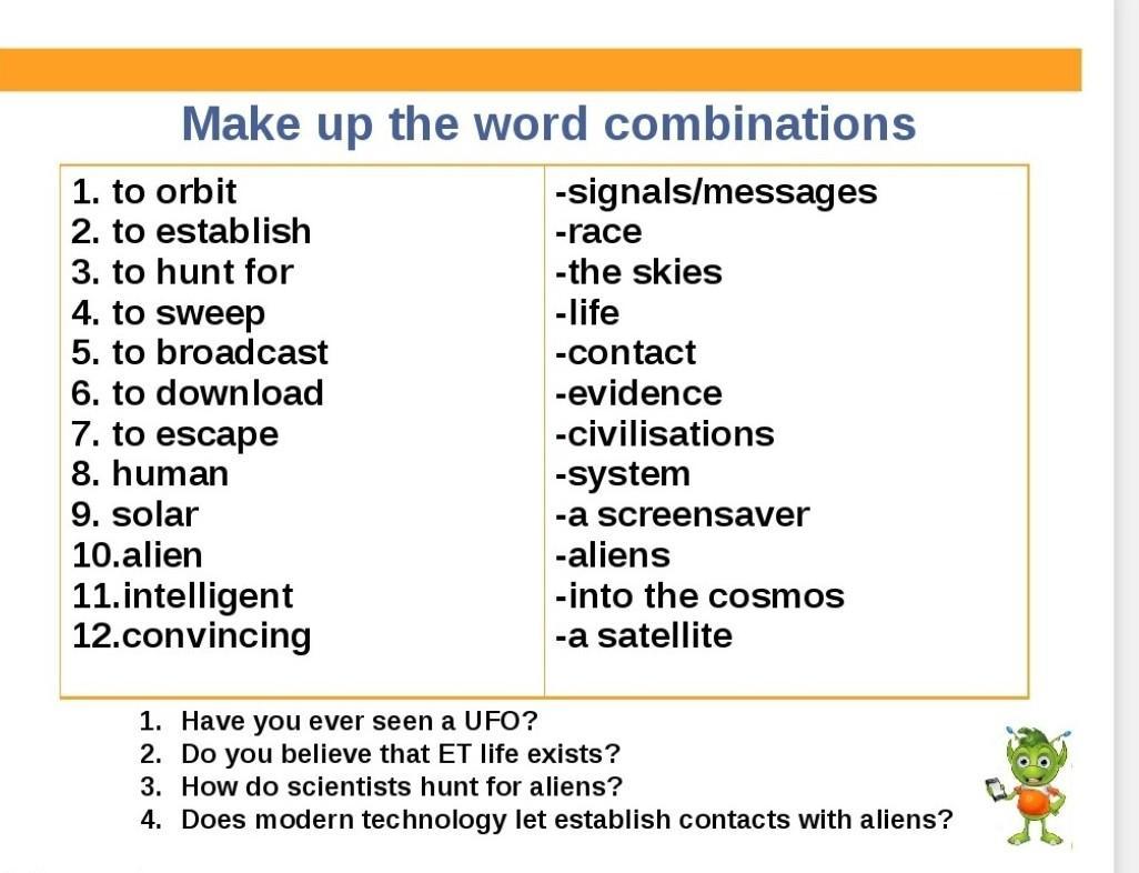 3 - 10 (to hunt for aliens - охотиться на инопланетян)