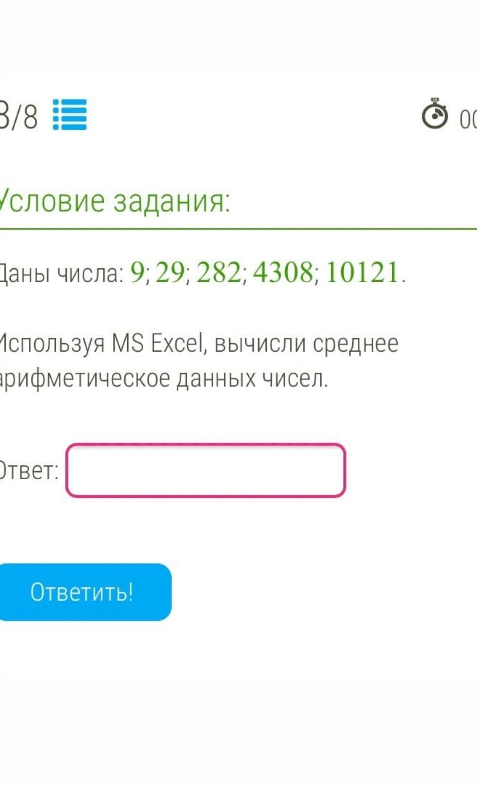 Чтобы найти среднее арифметическое нужно все числа сложить,и разделить полученное число на количество чисел