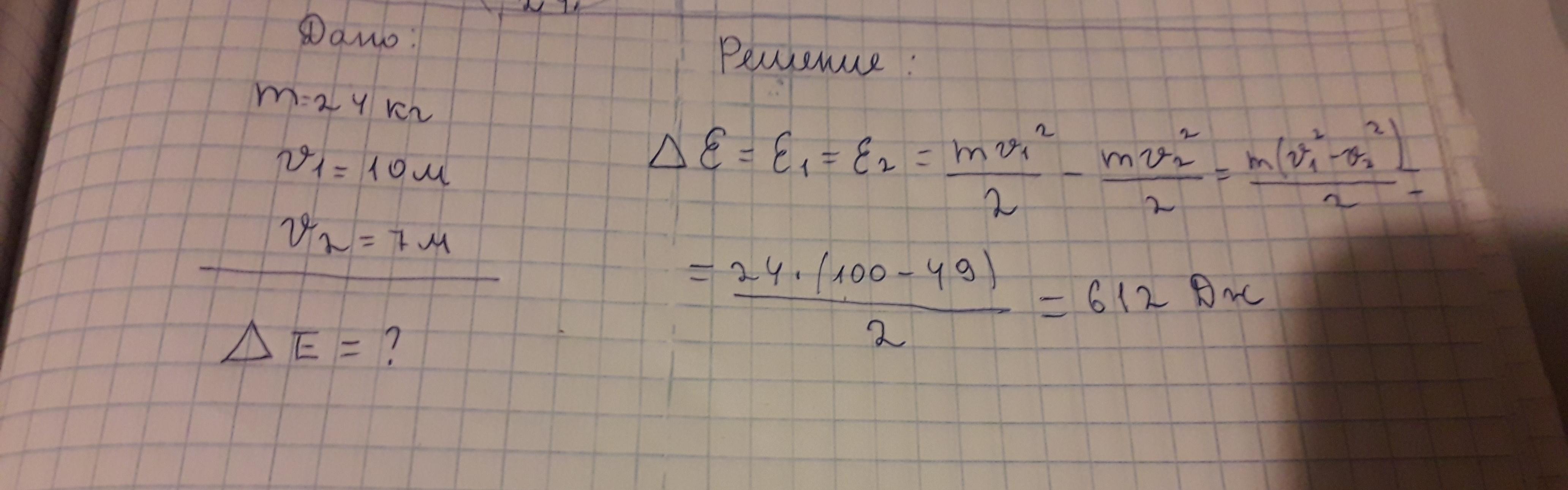 Бегущая со скоростью 10 м/с собака массой 24 кг снизила скорость бега до 7 м/с.