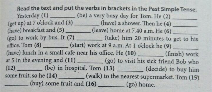 was, got up, had, had, left, went, started, had, finished, went, was, decided, walked, bought, went