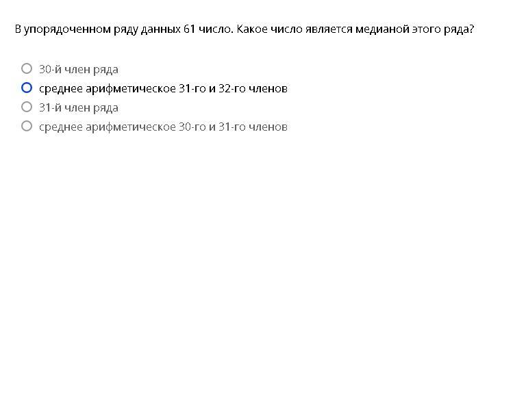 61 можно разложить как 30 + 1 + 30. Число 1 находится посередине, а значит медианой будет 31-й член последовательности.