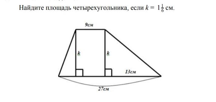 Площадь трапеции: ½*h*(а+б) = ½*1¹/6(9+27)