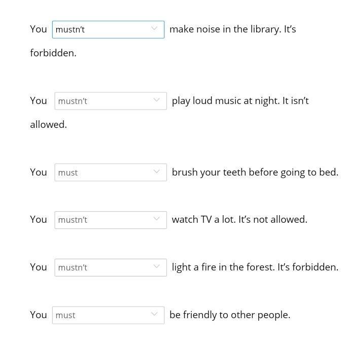 Скажите где ошибки. Нужно вставить can/can't или must/mustn't