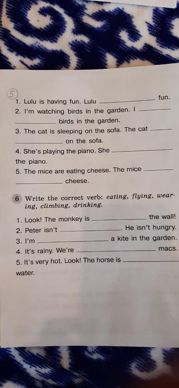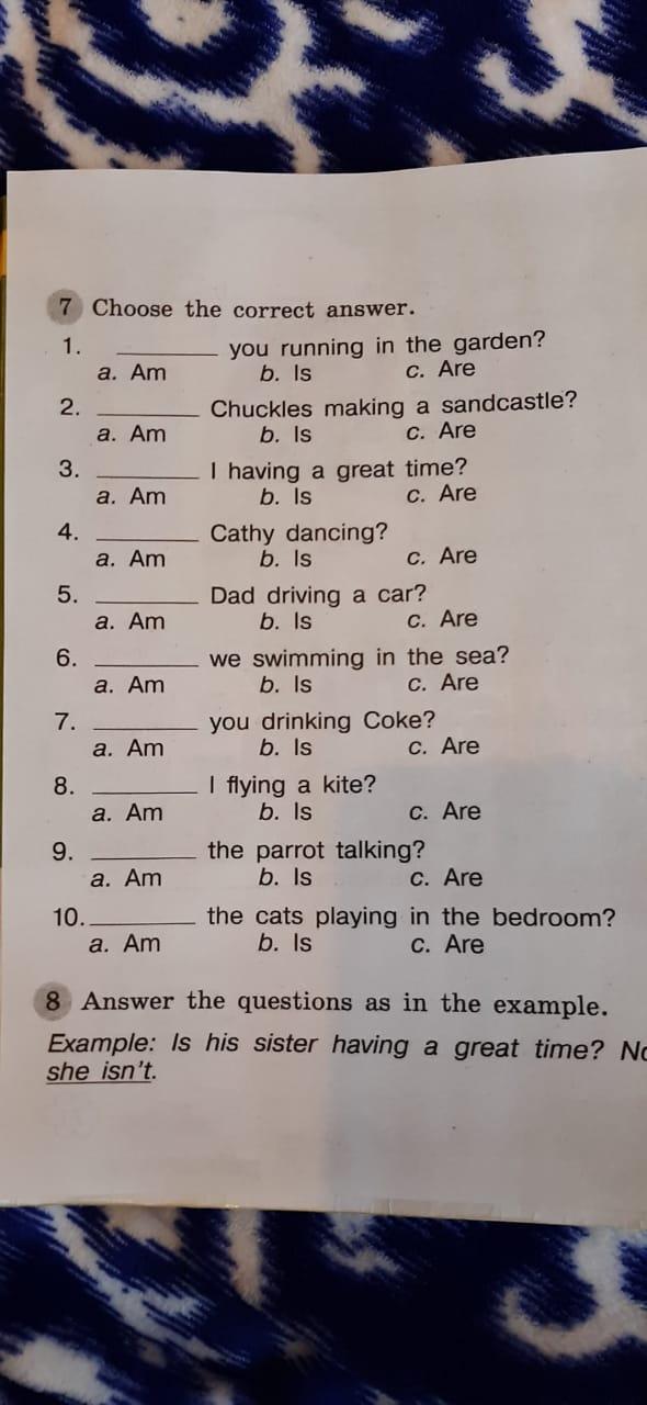 Упр.5 написать отриц.предл.;упр.6 вст.слова по смыслу + перевод;упр.10 составить предл.;упр.7 выбрать вспомогательный глагол.