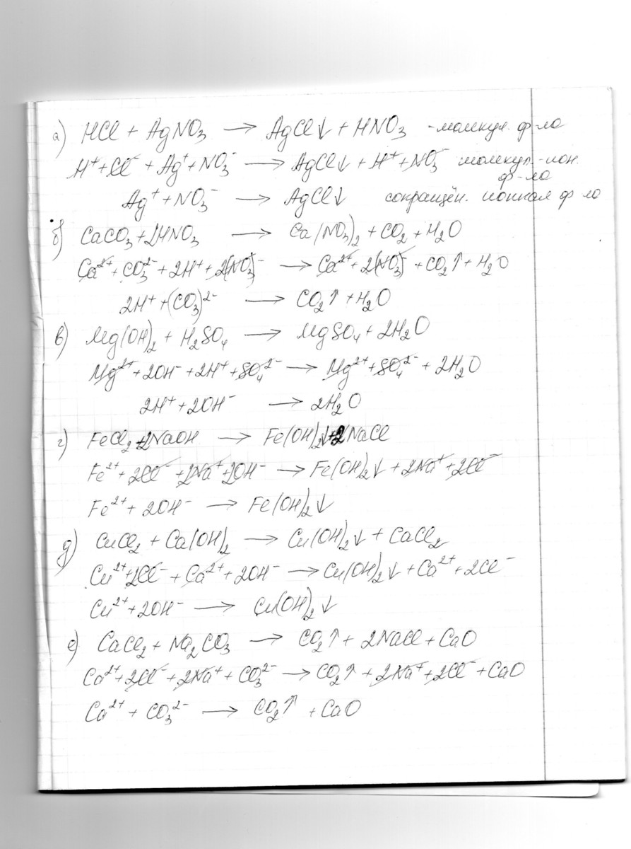b))CaCO3+HNO3=>Ca(NO3)2+Н20+CO2(стрелочка вверх-выделение газа)