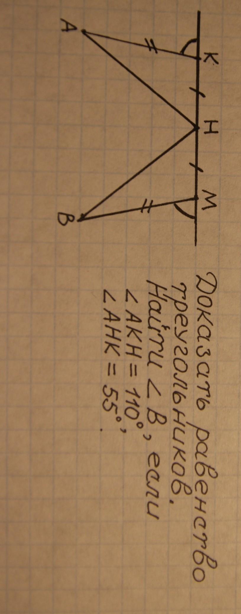 Внешний угол К=М это значит что и внутренние углы равны.