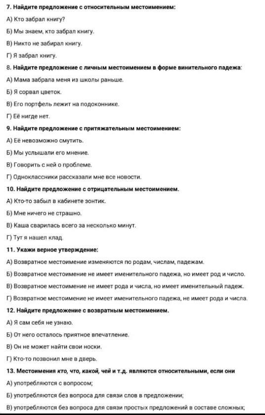 7Б 8А 9Б 10Б 11Г 12А 13В