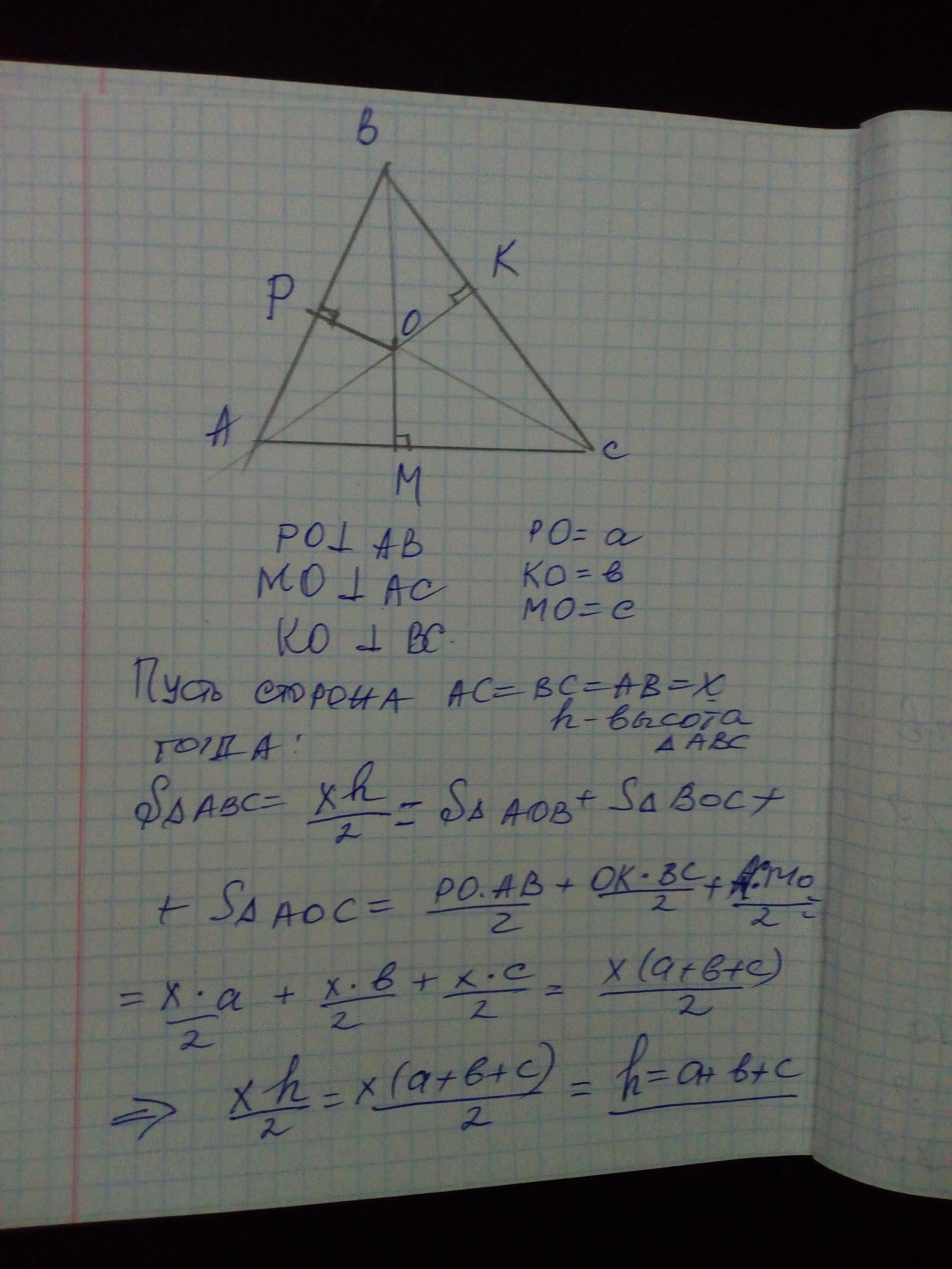 Відстані від якої до сторін трикутника дорівнюють А Б і С відповідно. Знайдіть висоту трикутника
