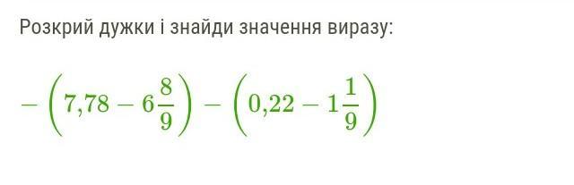 -(7,78-6 8/9) - (0,22 - 1 1/9) = - 7,78 + 6 8/9 - 0,22 + 1 1/9 = - 8 + 8 = 0