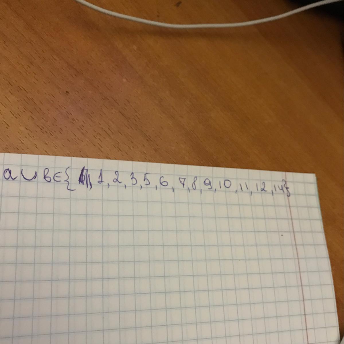 А в объединении с б пренадлежит множеству (1,2,3,5,6,7,8,9,10,11,12,14)