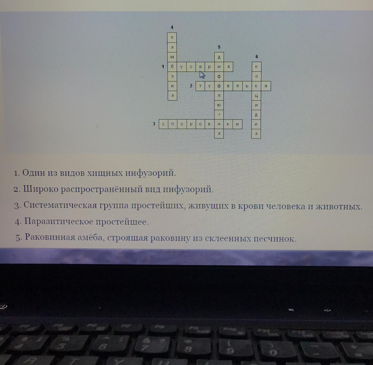Шестой можно не вставлять, но если хочешь, то вопрос : «Паразитическое простейшее, живущее в кишечнике кроликов, кур»