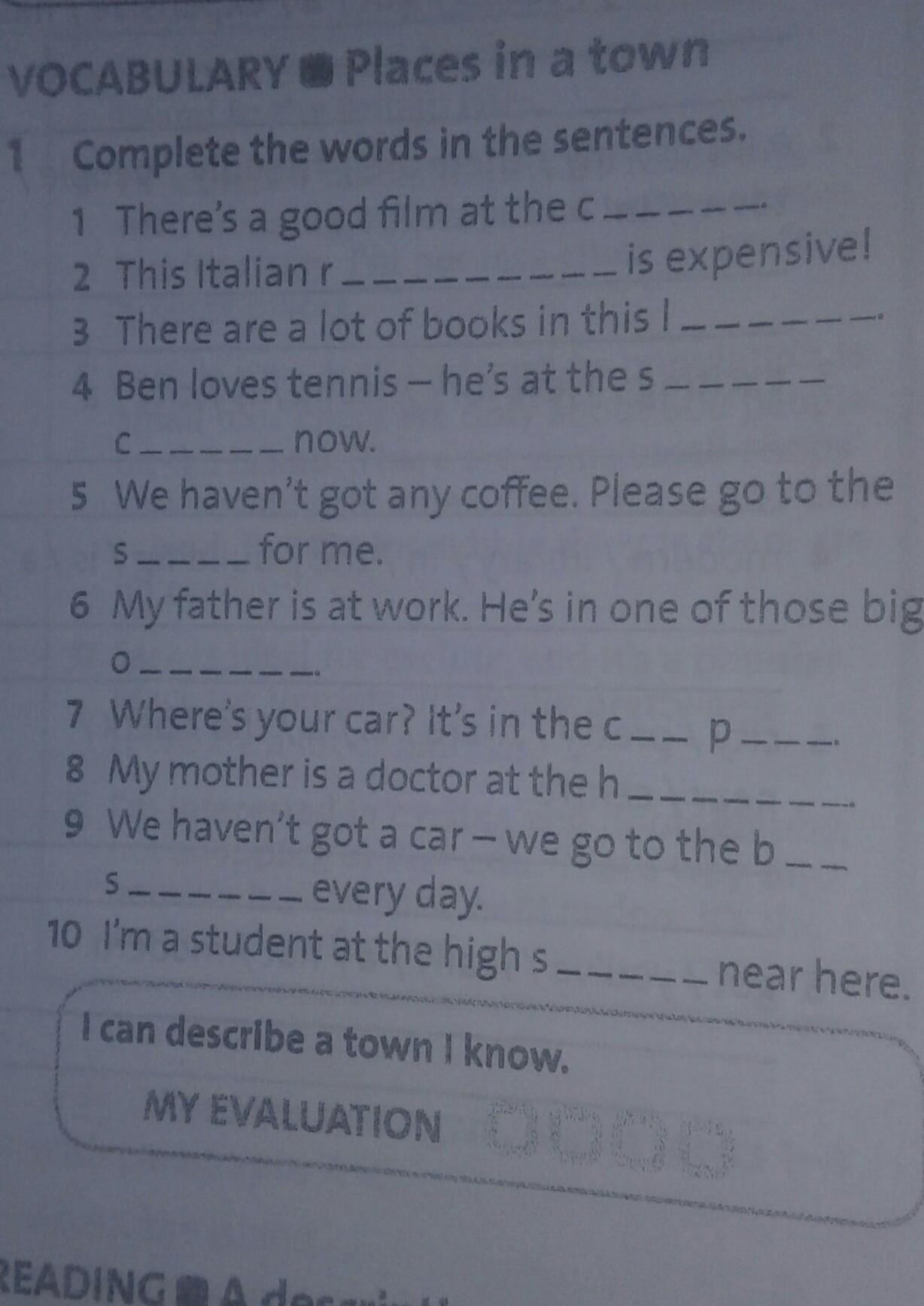 1)cinema 2) restaurant 3) library 4) - 5) store 6) - 7) car park 8)hospital 9)bus station 10)school