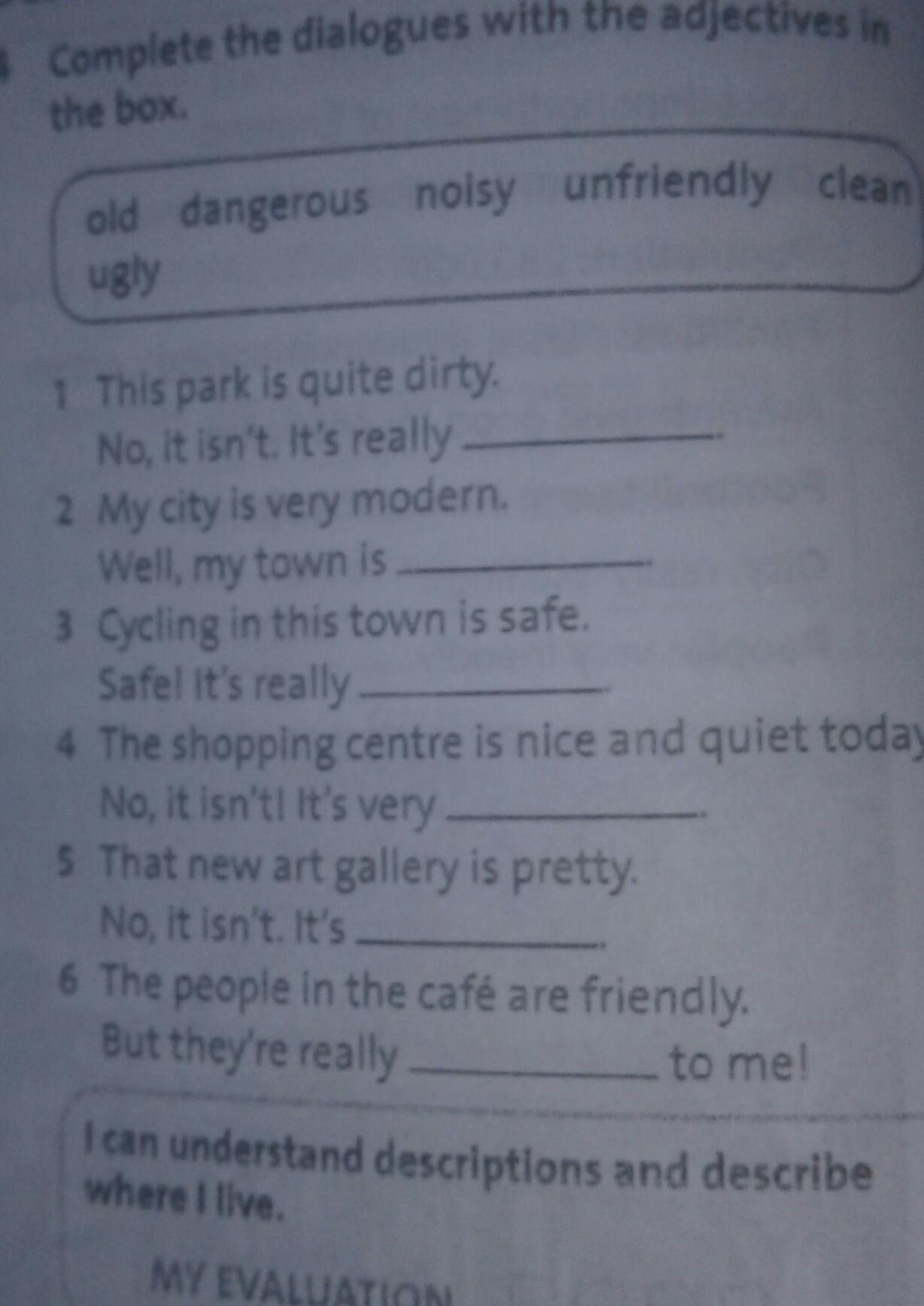 Ответ:1clean,2old,3 dangerous, 4noisy,5 ugle, 6unfriendly
