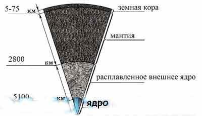 Подпишите на рисунке 1 внутренние оболочки Земли и укажите, на какой глубине находятся границы между ними.