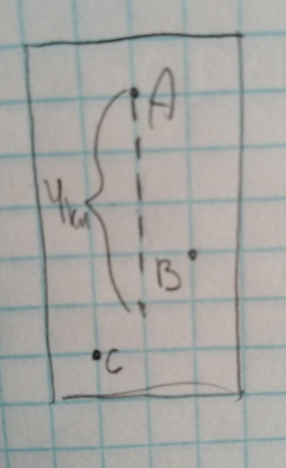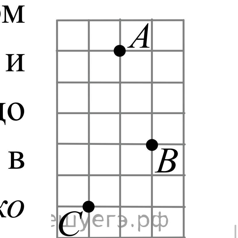 На клетчатой бумаге с размером клетки 1 см x 1 см отмечены точки А, В и С. Найдите расстояние от точки А до середины отрезка ВС. Ответ выразите в сантиметрах. впишите только число.