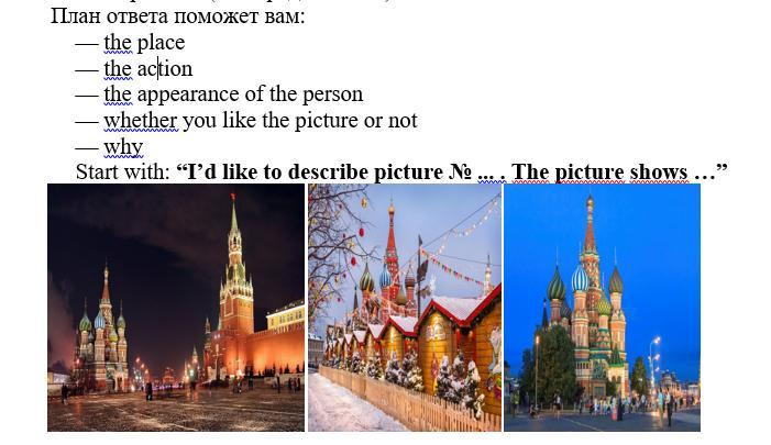 Выберите фотографию и опишите ее. У вас есть полторы минуты на подготовку и не более двух минут для ответа. У вас должен получиться связный рассказ (7–8 предложений).