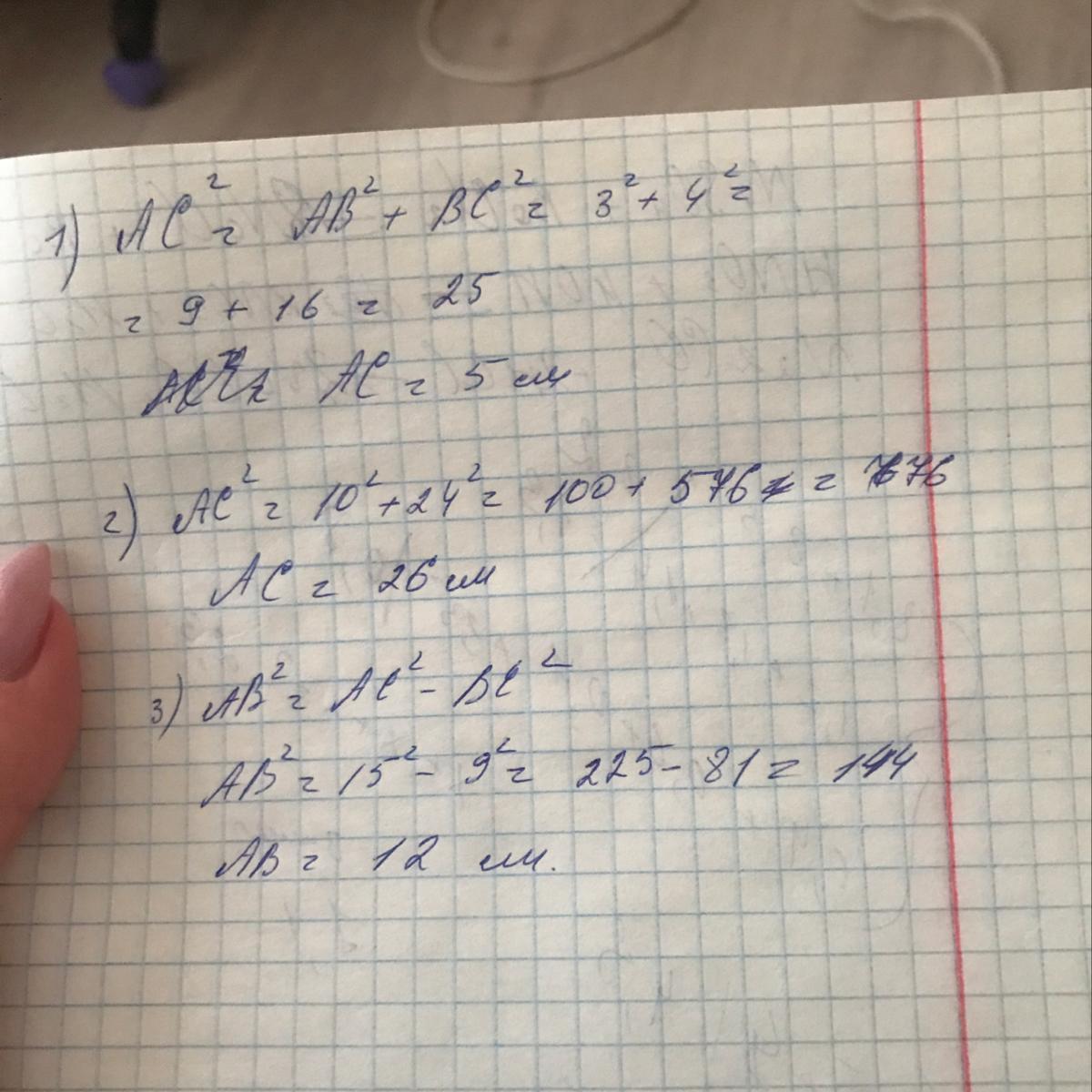 2) Чему равна гипотенуза прямоугольного треугольника с катетами 10 см и 24 см?
