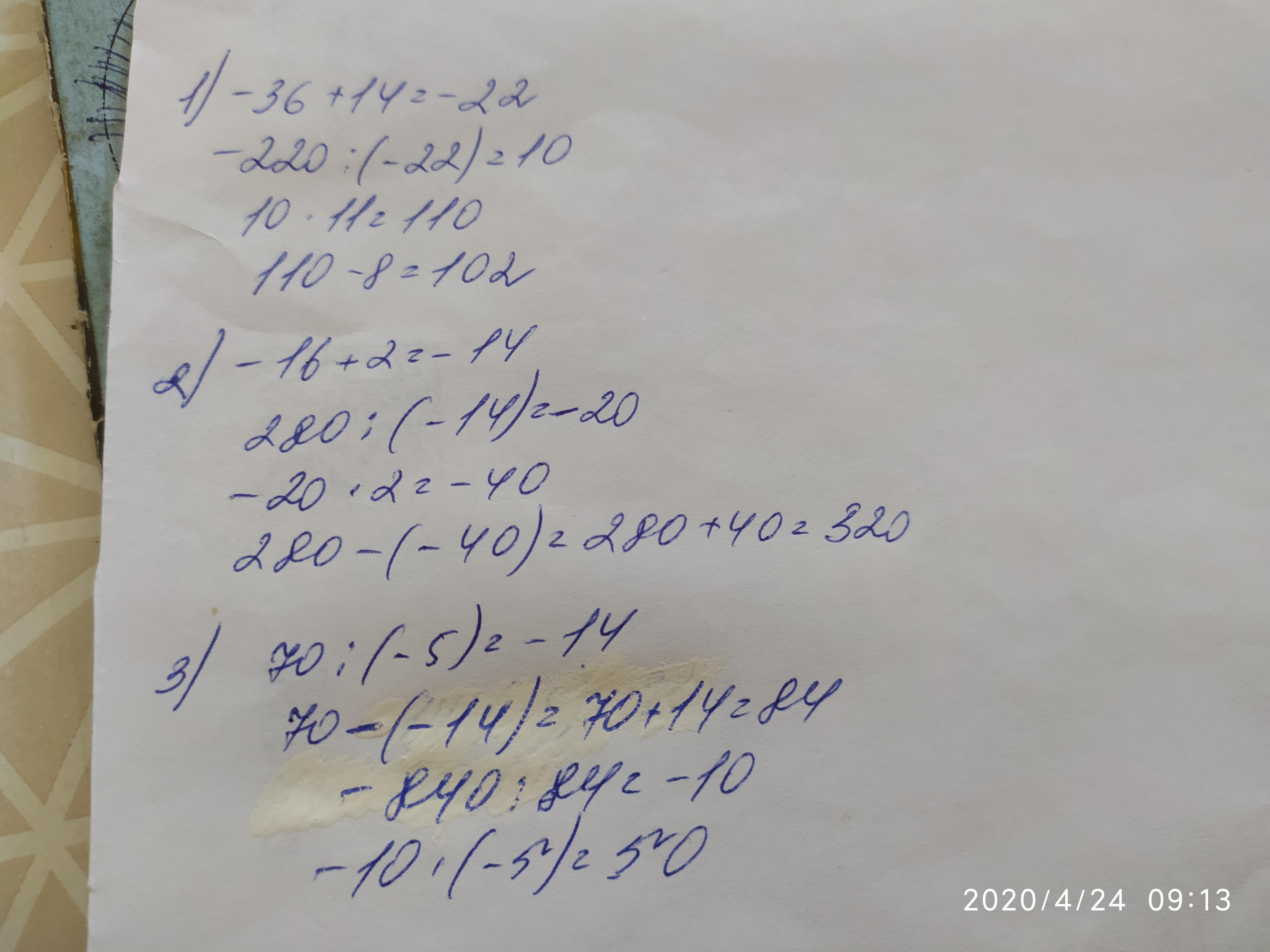 РЕШИТЕ ПРИМЕРЫ НА ЦЕЛЫЕ ЧИСЛА.