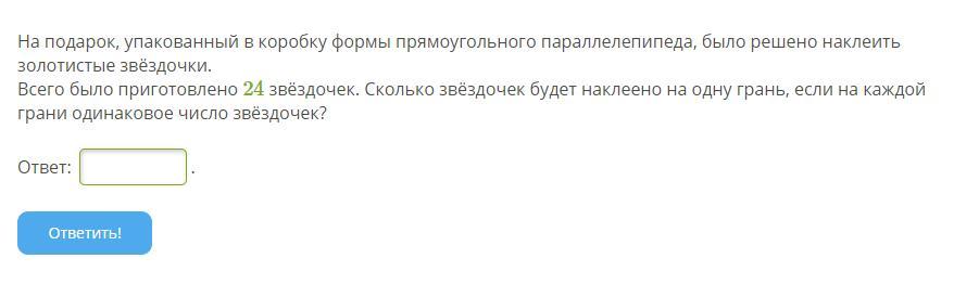 У Паралелипипеда 6 граней, 24÷6, получим 4 звезды на 1 грань