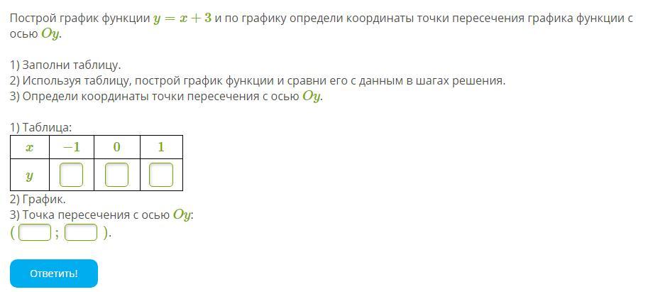 1)Построить график. График линейной функции, прямая линия. Придаём значения х, подставляем в уравнение, вычисляем у, записываем в таблицу. Для построения прямой достаточно двух точек, для точности построения определим три.