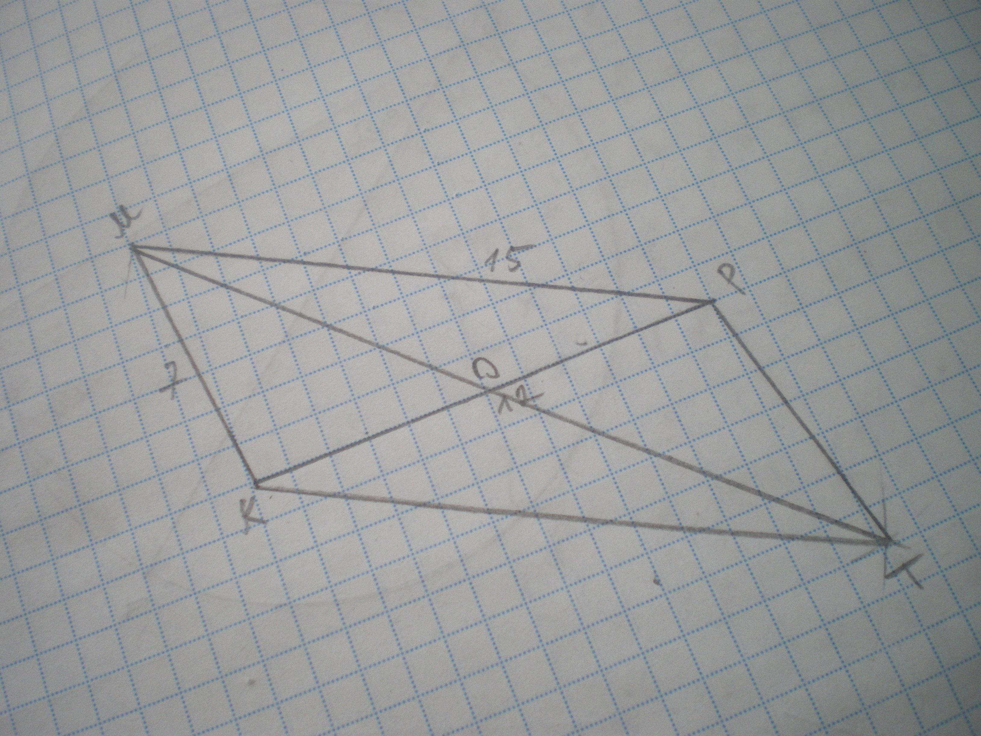 Дано: КМРТ - паралелограм, КМ=РТ=7 см, МР=КТ=15 см, КР=12 см. Знайти МТ.