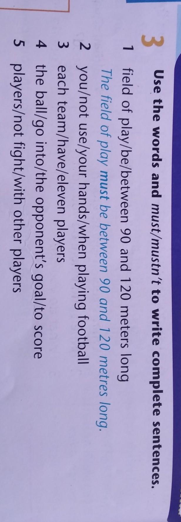 2) You mustn't use your hands when playing football.