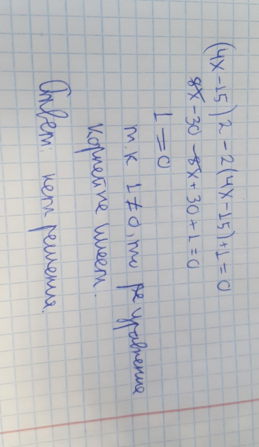 Реши уравнение (4x−15)2−2(4x−15)+1=0