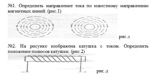 1. Определить направление тока по известному направлению магнитных линий. (рис.1)