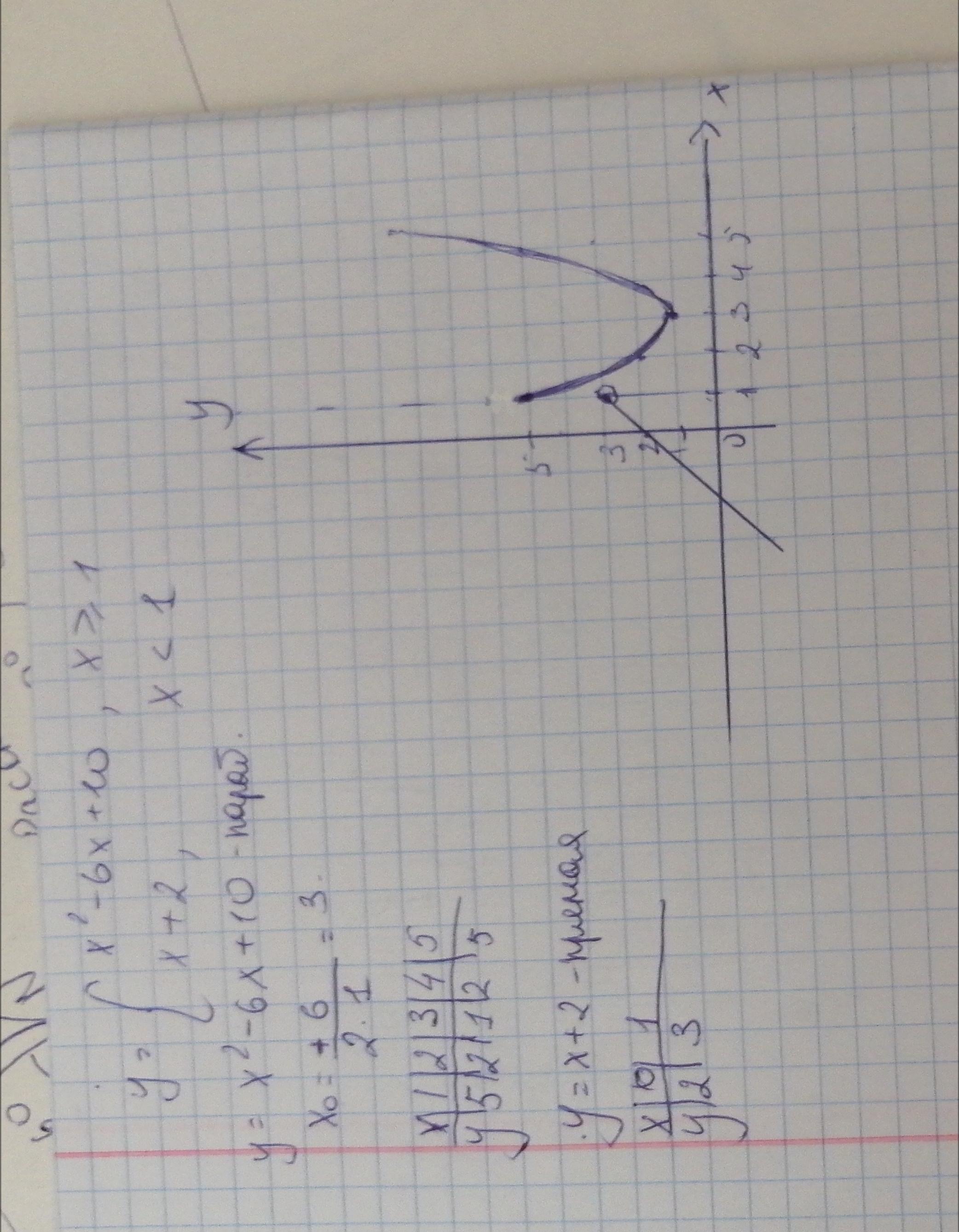 Вот так, в первом случае у тебя парабола, ищем ее вершину и строим графиг при х больше 1