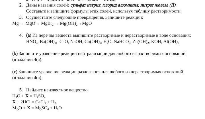 4. a) NaOH, Ba(OH)2, Ca(OH)2 - растворимые.