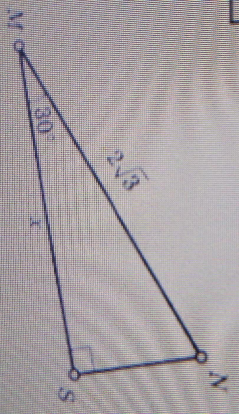 прилежащий искомый катет MS=MN*cos 30°= 2√3*√3/2=3