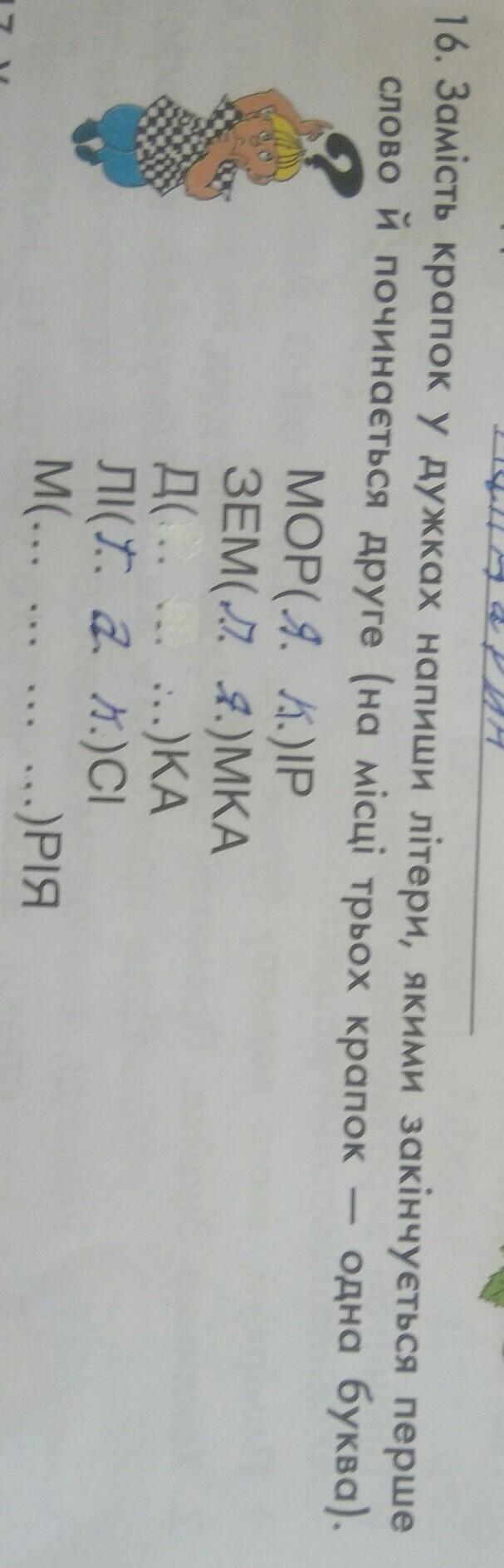 Замість крапок у дужках напиши літери,якими закінчуються перше слово й починається друге слово