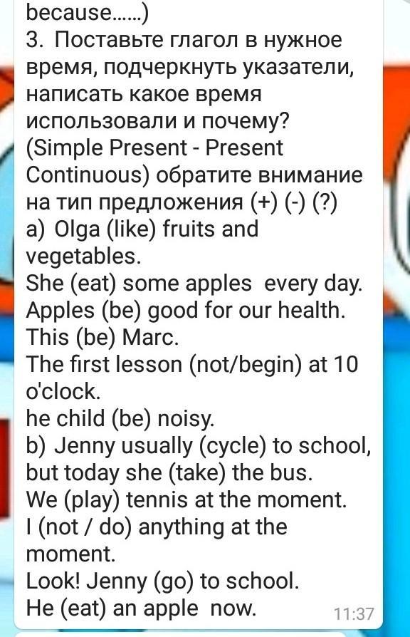 b) Jenny usually cycles to school, but today she is taking the bus.