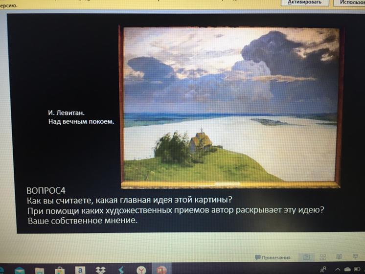 главная мысль этой картины показать просторы нашей земли ,автор раскрывает эту идею с помощью объемного неба мое мнение автор хорошо раскрыл эту идею, мне эта картина очень нравиться