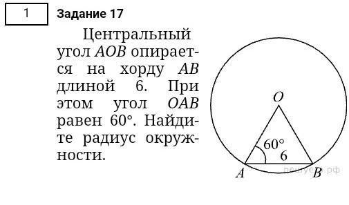 ∠АОВ=180-(60+60)=60°⇒ΔАОВ - равносторонний ⇒АВ=АО=ОВ=6, АО=ОВ=r=6