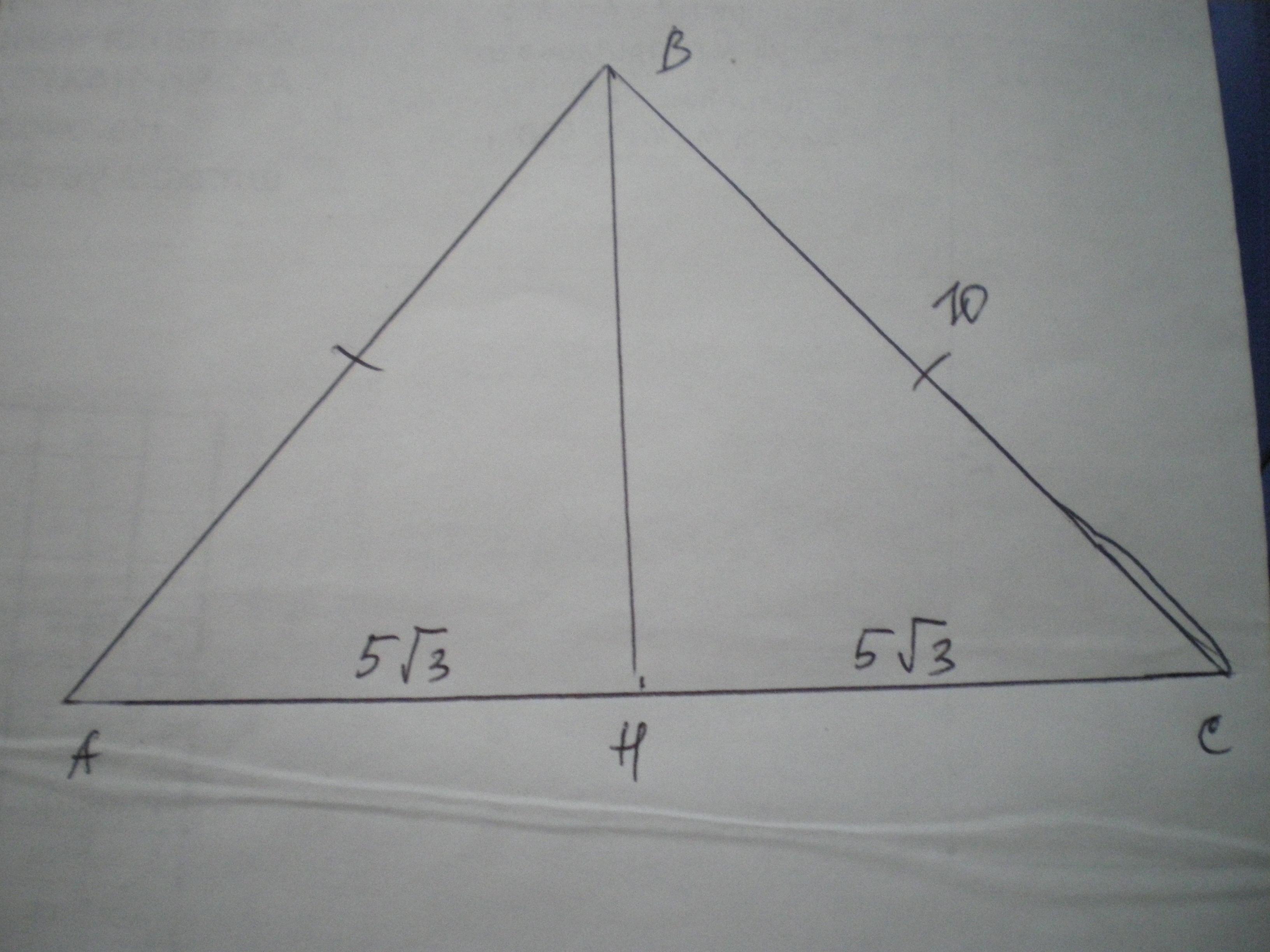 Проведемо ВН - висоту і медіану. АН=СН=5√3 см.
