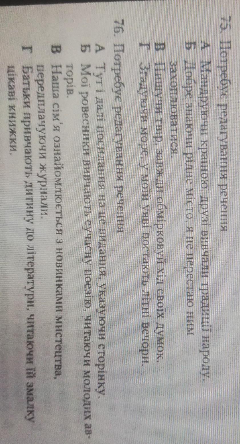 75. Г (після слова "море", яке закінчується на голосну, вжита голосна буква "у". Правильно "...море, в моїй уяві..."
