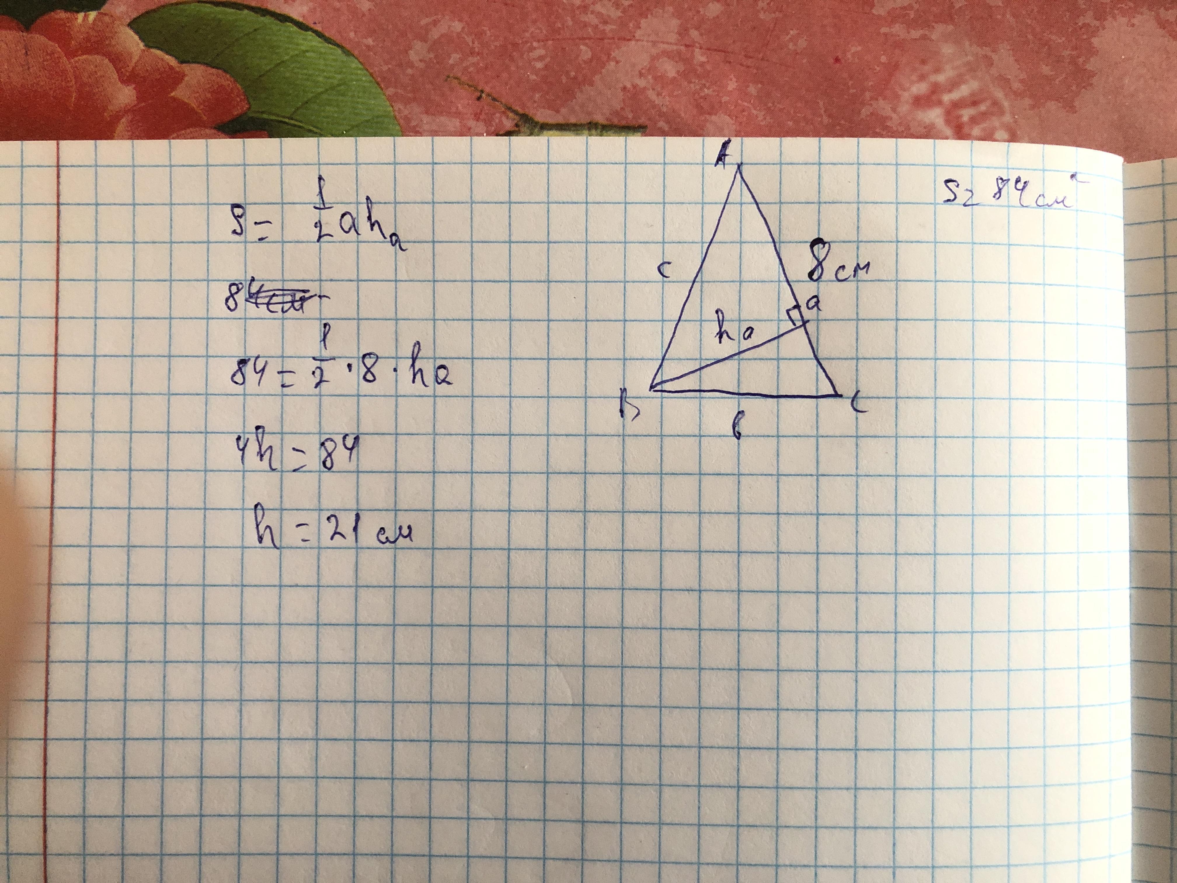 площадь треугольника равна 84см^2 , а одна из его сторон равна 8 найдите высоту треугольника проведенного к этой стороне