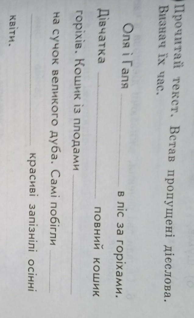 Оля і Галя пішли в ліс за горіхами. Дівчата набрали повний кошик горіхів. Кошик із плодами повісили на сучок великого дуба.