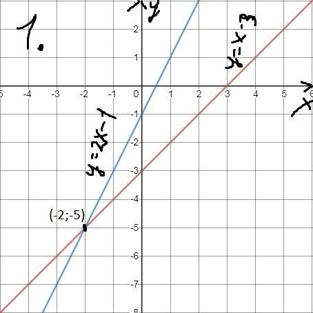 2. Постройте в одной системе координат графики функций и укажите координаты точки их пересечения: