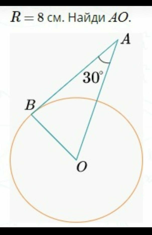 АВО - прямоугольный треугольник , по свойству катета напротив угла 30 градусов: 2ВО = АО, а ВО = радиусу = 8, значит АО = 2*8 = 16